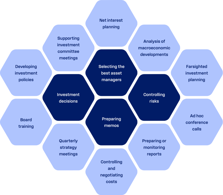 Our professional consulting covers all areas of institutional investing, including asset allocation, asset liability management (ALM), manager selection, controlling and reporting, and sustainability criteria. Clearly structured memos summarize all the key information for you and ensure full transparency.